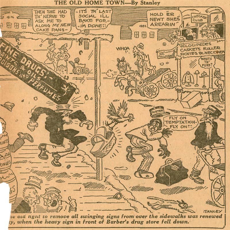 Lee W. Stanley was an American cartoonist, who was active from 1906 until about 1964. He is best-known for his hillbilly cartoon series 'The Old Home Town', that was syndicated by King Features from 1923 until 1944. His wife Harriet assisted on the strip. Stanley was also active as a newspaper cartoonist and children's book illustrator (a.o. by Alice Crew Gall).