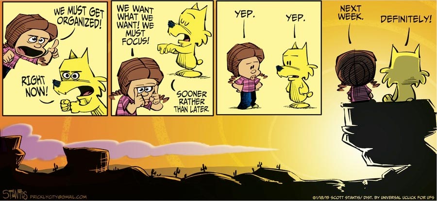 In 2005, Stantis began 'Prickly City', a politically oriented comic-strip about a girl and her coyote. He left 'The Buckets' at this time, which is now continued solely by Stantis' former assistant Greg Cravens. United Feature Syndicate distributes 'Prickly City' since 2009. In that same year, Stantis was hired as editorial cartoonist for the Chicago Tribune. Previously, Stantis had been a cartoonist with The Birmingham News, The Commercial Appeal, The Arizona Republic and the Grand Rapids Press. Apart from working on his strips and cartoons, Scott Stantis is a writer, animator, father and collector of political memorabilia.