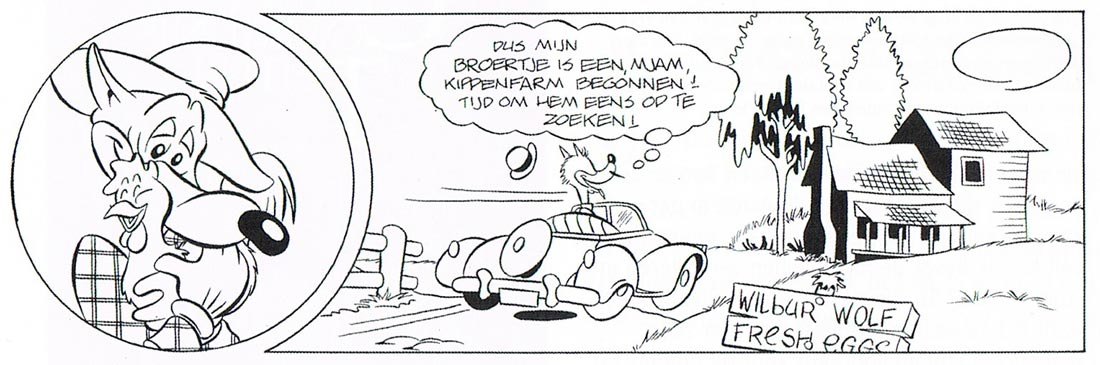 In the early 1990s, Stavenuiter was a member of another Arnhem comic studio, Funny Farm, where he worked alongside Kees de Boer, Gerard Leever, Stef de Reuver, Jeroen Steehouwer, Hester van de Grift, Mars Gremmen and Frans Leenheer, among other people. After the death of Ben Jansen in 1994, Funny Farm moved into the old Studio Arnhem building at 31A Kastanjelaan, where it is still based. Between 1992 and 1994, Stavenuiter was part of the editorial team of Funny Farm's own magazine Razzafrazz, for which he also made a couple of comic stories, for instance the funny animal story 'Wilbur Wolf' (1992), in tribute to Tex Avery, Chuck Jones and 1940s animation in general. Around this time, he also produced artwork for the educational publishing house Malmberg and the toddler's magazine Bobo. In the first 1998 issue of the pop cultural magazine Zone 5300, Stavenuiter had a comic page published based on the Dolly Parton song 'Two Little Orphans'. Around the turn of the century, Jaap Stavenuiter left the comic industry and moved on to work as an IT specialist and web designer.