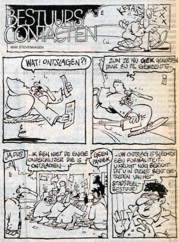 'Bestuurscontacten' (Het Parool, 30 January 1988), with a guest appearance by then-mayor of Amsterdam Ed van Thijn in the final panel.