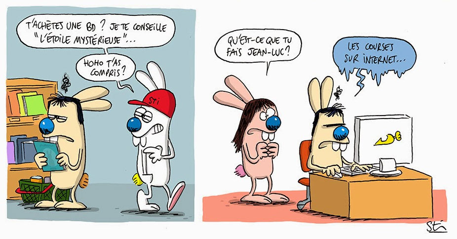 Ronan Lefebvre is a cartoonist and comic scriptwriter from Lille, better known as Sti. Originally a computer engineer, he gave up his daytime job and turned to cartooning. He published his first works on his blog, and soon got his work published on a regular basis in magazines like Le Journal de Mickey, Spirou and Lanfeust Mag. Most of his work is published in book format by Paquet from Switzerland, such as his humor series 'Tony Rabbit' (2008-2012) and 'La Ferme!' (2011-2014).