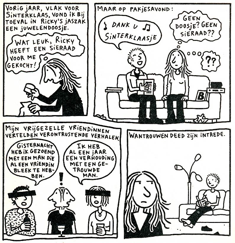 When she started in the 1990s, Barbara Stok was one of the few women making comics in the Netherlands. Autobiographical comics had been made in the decades before by artists like Peter Pontiac and Gerard Leever, but Barbara Stok, Maaike Hartjes and Gerrie Hondius popularized the genre among a new generation. Breaking ground with their open-hearted self-reflections in comic format, they were quickly dubbed "The Big Three" of Dutch female comics. Several authors have explored the autobiographical comics tradition since then, including Floor de Goede, Michiel van de Pol, Margreet de Heer, Edith Kuyvenhoven, Marq van Broekhoven, Danny SteggerdaBetje Ton and Sandra de Haan. Barbara Stok was an influence on Michiel de Jong and her comics have also received admiration from underground comix legend Robert Crumb, who called her stories "quite funny, well told and courageously truthful."