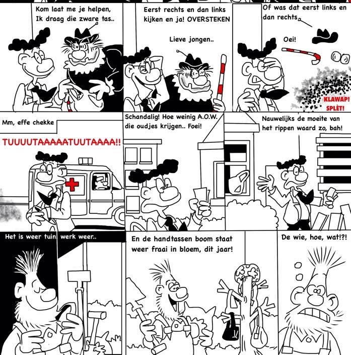 Besides his commercial work, Straatman has been posting his personal comics projects on Facebook, all drawn on the iPad, since 2014. First there were new adventures of 'Aloysius Frispeer' (2014-2015), the unfortunate neighbor from 'De Familie Fortuin', who now lived next to a family of Arabian origins. An avid cigar smoker, Ruud Straatman subsequently posted a daily 'CigarToon' (2015-2017). In early 2025, Straatman began posting episodes of the comic strip 'Het Stripgebeuren' on Facebook. Credited to a certain "Onno Matopé", the strip comments on the comic scene and the medium in general. From the start, it caused controversy for its harsh criticism of specific creators and publishers, it's heavy reliance on AI-generated artwork and its promotion of a questionable website for downloading digital comics. Even though 'Het Stripgebeuren' shows typical Straatman style and humor, the author has claimed he isn't Onno Matopé and that he is merely helping out with making the strip public.