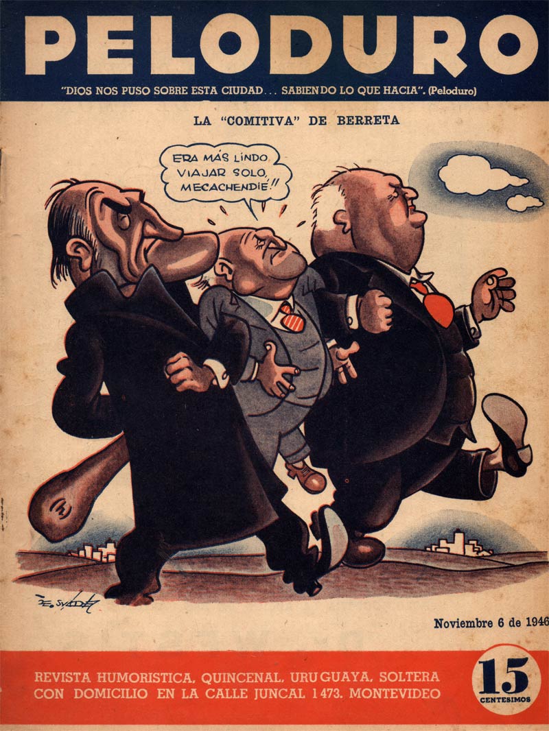 As in many countries, a comics movement arises from political satire, and it was Suarez's comic 'Peloduro' that paved the way. Published from 15 January 1933 in the daily El País, 'Peloduro' stars a boy from the working class with an eye for false political and social positions. From 24 September 1935, the feature was continued in El Diario, and it also ran in La Mañana, El Nacional, El Popular, Marcha, Época and Justicia. Peloduro was also the title of a weekly humor magazine, which Suarez published and edited, with intervals, between 1943 and 1964.
