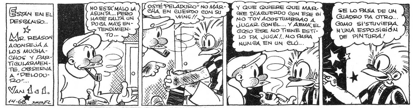 Julio Emilio Suarez was born in 1909 in the capital city of the Salto Department in northwestern Uruguay. Suarez studied architecture in Montevideo in 1927. He began his career publishing parliamentary notes in Carlos Quijano's short-lived daily El Nacional. The cartoonist published his first drawings in El Plata (the feature 'Wing y Roncadera'), before in 1934 his association with the magazine Mundo Uruguayo took off. He served as managing editor and created two cartoon features for this magazine, 'Ríase o no' ("Laugh or not") and 'Contra-refranes' ("Contradictions"). Suarez remained a contributor until 1950.
