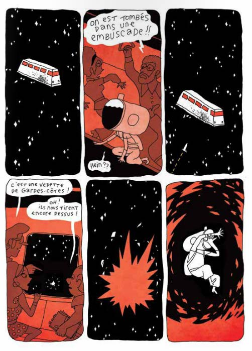 Erwann Surcouf was born in Mayenne. He graduated in Illustration from the School of Decorative Arts in Strasbourg in 2000, and then studied 3D Animation at the Gobelins School in Paris. He is working as a freelance illustrator since 2002, and his first comic album, 'Erminio le Milanais', was published by Vents d'Ouest in 2006. The script was by Amandine Laprun and Joseph Béhé, with whom Surcouf also cooperated on 'Le Chant du pluvier' (Delcourt, 2009). He published his solo mini-comic 'Un soir d'été' with Danger Public in 2007 and participated in collective projects like 'Boule de Neige' (Delcourt, 2007), 'Chicou Chicou' (Delcourt, 2008) and 'Les Autres Gens' (Dupuis, 2011-2014). Vide Cocagne released his futuristic graphic novel 'Pouvoirpoint' in 2016.