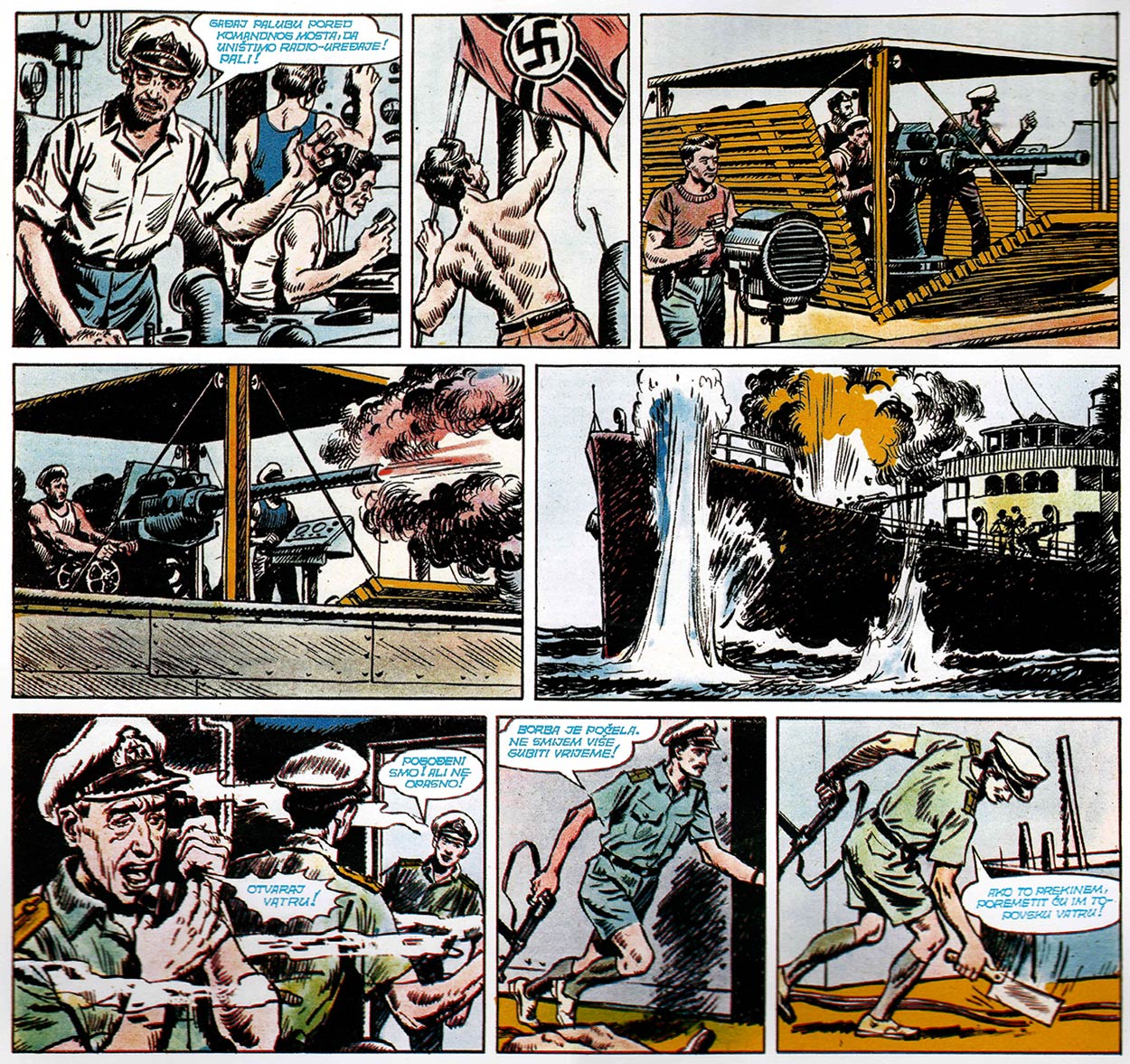 Besides being a newspaper and magazine illustrator/cartoonist, Svirčić worked on a variety of realistic comic stories in the period 1954-1966. His main influences were the American masters Alex Raymond ('Flash Gordon') and Hal Foster ('Prince Valiant'). One of his first projects was an adaptation of Gustave Flaubert's 1862 novel 'Salambo', but the project was never finished. Svirčić's first published comic was 'Zasjeda na Mediteranu' ("Ambush in the Mediterranean", 1954), written by Marcel Čukli and serialized in Miki strip magazine. Svirčić and Čukli collaborated once again for the serial 'Obruč' ("Hope"), which ran in Naša smotra in 1962-1963. In 1959, the editor of Plavi Vjesnik hired Svirčić and Žarko Beker to complete the serial 'Kroz minula stoljeća', filling in for Julio Radilović. Svirčić's most popular serials were 'Gusari na Atlantiku' ("The Pirates of the Atlantic", 1963) and 'U Ledenoj Pustinji' ("In the Ice Desert", 1963), which were both written by popular sci-fi writer Zvonimir Furtinger and serialized in Plavi Vjesnik. His final comic stories were 'Počelo je na Čukur-Česmi' ("It Started at the Čukur Fountain", 1966) and 'Roški Buntovnici' ("The Rebels of Rog", 1966), both scripted by Rudi Aljinović and published in Strip magazine. A final story by Svirčić and Aljinović called 'Pobuna Okovanih' ("Rebellion") remained unpublished. As it wasn't financially rewarding, Zdenko Svirčić's career in comics came to an end in 1967.