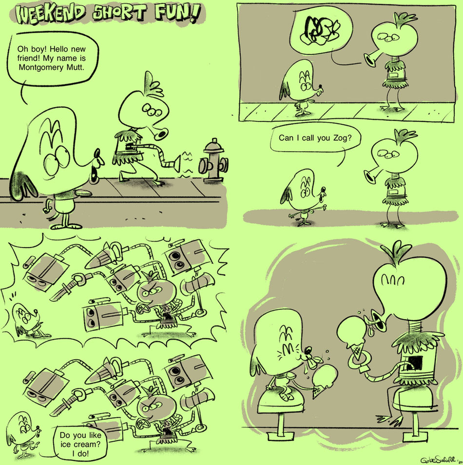 In 2020, Swarr launched the web gag comic 'Weekend Short Fun', published in Twitter and Instagram. The series is centered around the anthropomorphic dog Montgomery Mutt and his dysfunctional family.