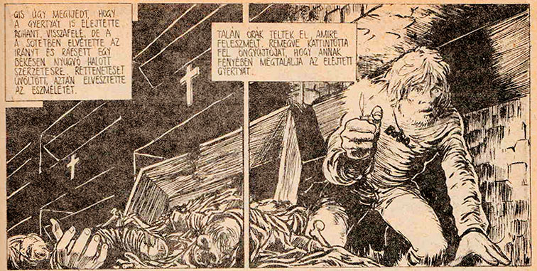 In the 2000s, Szendrei gradually returned to comics. In 2000, he designed a cover for the 'Marsyas képregénytár' comic book series, published by the Marsyas National Sci-Fi Association. He also began an association with the children's magazine Turdorka, writing and drawing a one-page comics feature. In 2005 Galaktika magazine ran his short comic story 'Mint a madár'. In 2011, he launched his new fantasy series 'Swords' with writer Attila Nemeskéri, about a mysterious plague that sweeps through the kingdom of Londeron. The series however came to a sudden halt after only four issues. In 2019 he took part in 'Seuso mozaik', a collective album about the ancient Seuso Treasure. It was written and supervised by Ferenc Kiss, with Endre Sarlós, Tibor Szendrei, József Sváb, Brazil and Roland Pilcz took care of the art and coloring.