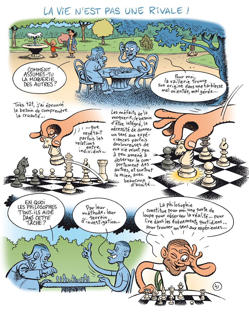 Since 2015, Nicolas Tabary has made a weekly political cartoon for L'Hebdo de Charente-Maritime. A selection of his topical cartoons was released in 2016 by Siranouche Éditions in the format of a coloring book, under the title 'Devenez coloriste à la place du coloriste' ("Becoming colorist instead of the colorist")". The title is a pun on Iznogoud's famous catchphrase "Je veux devenir caliphe à la place du caliph!" ("I want to become caliph instead of the caliph!"). With Eric Corbeyran as scriptwriter, he adapted Alexandre Jolien's philosophical novel 'Éloge de la Faiblesse' into a 2016 graphic novel for Éditions Marabout.