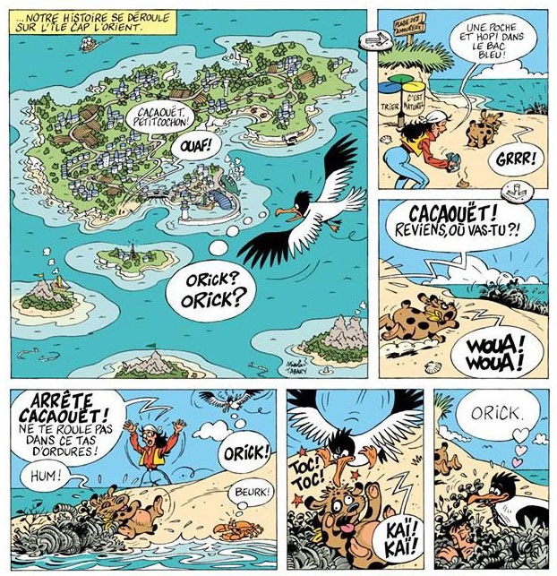 In addition to 'Iznogoud', Nicolas Tabary has worked on a variety of advertising comic books. In the mid-1990s, he provided colors for 'Don Patillo Veille Au Grain!' (Delcourt, 1995), a comic book for Panzani pasta, written by Christine Arfeuillères and drawn by Jacques Boisnard. With his sister Muriel as scriptwriter, he created the one-shot comic book 'Les Aventures d'Orick et la Mouette Trieuse - L'Île Aux Trois Couleurs' (2003) for the community of Cap L'Orient. For the Tête De Com communication agency, he worked with scriptwriter Jean-Pierre Cétou on the two-volume comic series 'Têtes de Com - Le Petit Monde de Gigapôle' (JMD Conseil, 2004, 2006), and for the Kéolis public transport company, he made the promotional comic book 'Karo & Niko – Mystère Sur Le Littoral' (2004) with scriptwriter Frédéric Huet.