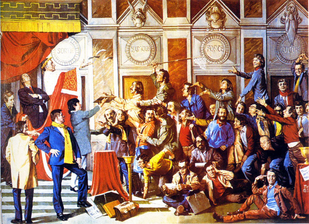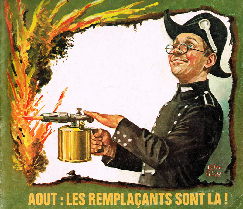Between 1962 and 1974, Pierre Tabary worked regularly as an illustrator for Pilote magazine. Under the pseudonym Peter Glay, he illustrated short stories, magazine covers and the section 'Musée Pilote'. He enjoyed parodying famous gouache paintings, imitating the lavish style of old-fashioned canvases. Most of his paintings, however, were inspired by current events and typically appeared in the news section, where columnists discussed that week's trending topics. In 1984, he contributed his final cover to Pilote.