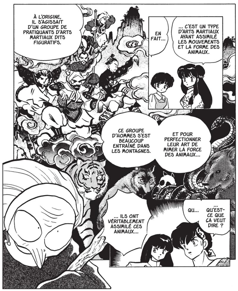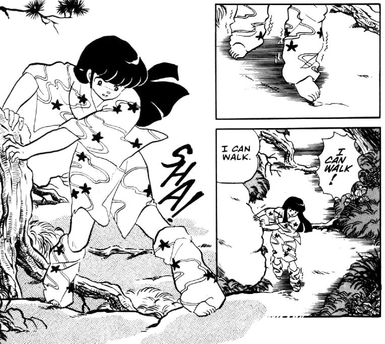 Takahashi's second new series was 'Ranma Nibun-no-Ichi' (らんま 1/2, 'Ranma 1/2', September 1987 - March 1996), her first manga not set in Japan, but China. It follows a highly unusual premise. A young boy, Ranma, and his father fall into cursed springs, which causes them to take on the physical form of a previous drowning victim from centuries ago. His father turns into a panda, while Ranma becomes a girl. Luckily hot water makes them return to their normal physical form, but cold water makes them a panda and a girl again. Despite this obstacle, Ranma tries to live a normal life and goes to a martial arts school. There he meets a girl, Akane Tendo, with whom he was supposed to have an arranged marriage. Yet Akane doesn't want to marry someone she has never met before. Ranma, on the other hand, is more troubled by the fact that he changes into a woman whenever sprinkled with cold water. Akane and Ranma frequently have to fight people who ridicule them. Others feel attracted to one of them. Or better said, the physical shape they appear to have. But in this universe one can never be sure whether anyone they meet isn't cursed by the same shape shifting falls into a river!