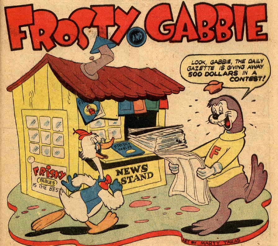 Taras also drew for Harvey's 'Casper, the Friendly Ghost', 'Herman and Katnip', 'Buzzy, the Funny Crow', 'Rags Rabbit', 'Spooky, the Tuff Little Ghost', 'Frosty and Gabbie' and 'Wendy the Good Little Witch' throughout the 1960s. 'Wendy' started life as the companion of 'Casper, the Friendly Ghost' in May, 1954. For Ziff Davis, he drew for the 'Sparkie' comic book, which was based on the famous 1950s TV show.