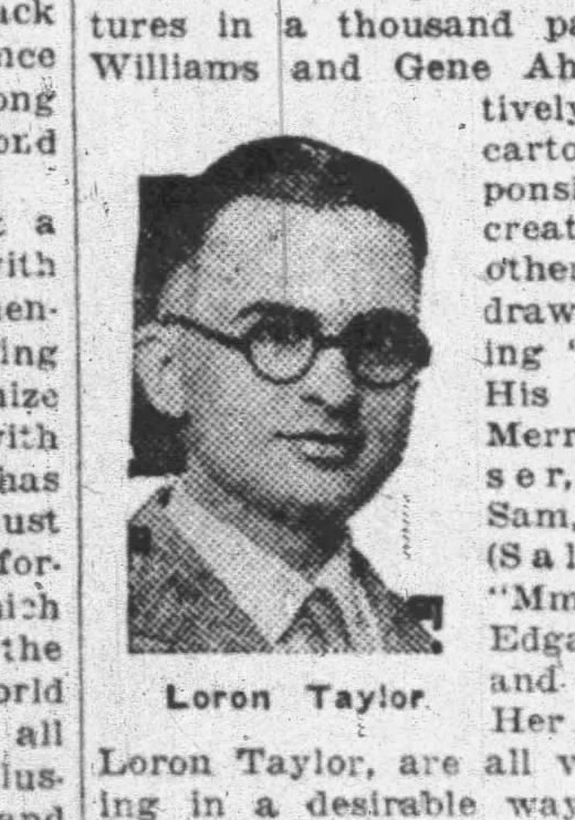 Loron A. Taylor was an American cartoonist and commercial artist. During a period of four years, he was affiliated with the Newspaper Enterprise Association, creating the gag-a-day comic 'Mom 'n Pop' (1924-1928) and drawing installments of 'The Romance of America' (1927).