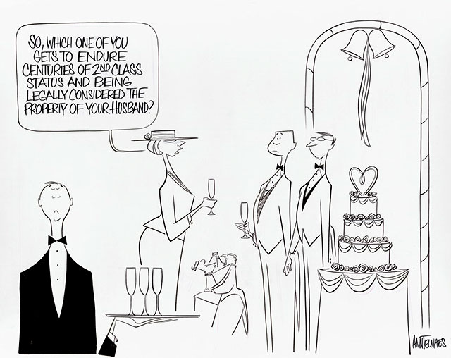 21 November 2003 cartoon by Ann Telnaes about same-sex marriages.