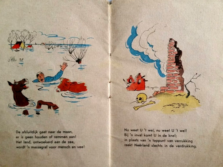 The booklet 'Zeg, Weet Je 'T Al?' (1944), presumably with illustration by Thomassen, incorrectly predicted what would happen if the Allied Forces invaded the Netherlands.