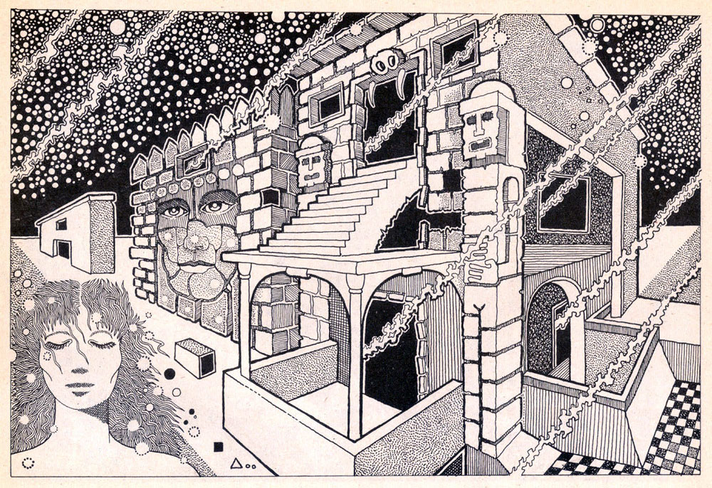 In 1972, without watering his style down, Thompson made more attempts at creating an actual story. He envisioned a series named 'Sphinx Comics' or 'Tales From the Sphinx'. Unfortunately, the first issue was never published, but 'Tales From the Sphinx 2' (Print Mint, November 1972), 'Tales From The Sphinx 3' (Print Mint, 1973) and 'Eternal Comics' (Last Gasp, June 1973) were. The story revolves around a group of extraterrestrial aliens who start a war in ancient Egypt. A shaman, Toth, and his wife, priestess Rda, are asked to fight this demonic alien force, named the hGwa. The trilogy is a mix between ancient Egyptian and Tibetan mythology, with elements from the Book of Genesis. Compared with Thompson's other work, the cartoonist provided more explicit narration to his images. In the third book, the story continues in the 16th century, involving Francis Bacon, William Shakespeare as well as Sir Francis Drake and the Spanish Armada. In 1983, the front cover art of 'Tales From The Sphinx 1' ended up on the back cover of the sixth issue of the City Limits Gazette. In 2012, the entire trilogy was reprinted by CreateSpace Independent Publishing Platform, containing a foreword/introduction by Thompson.