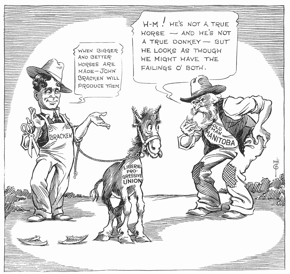 An early editorial cartoon by Charles Thorson for the Grain Growers Guide.
