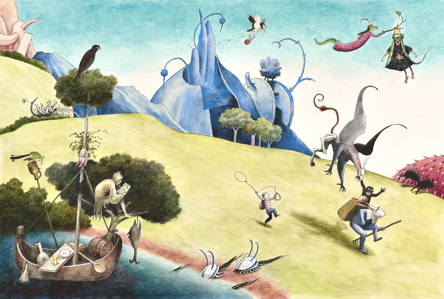Illustration for children's book 'De Wonderbare Reis van de Jongen' by Antonie Schneider (1998).