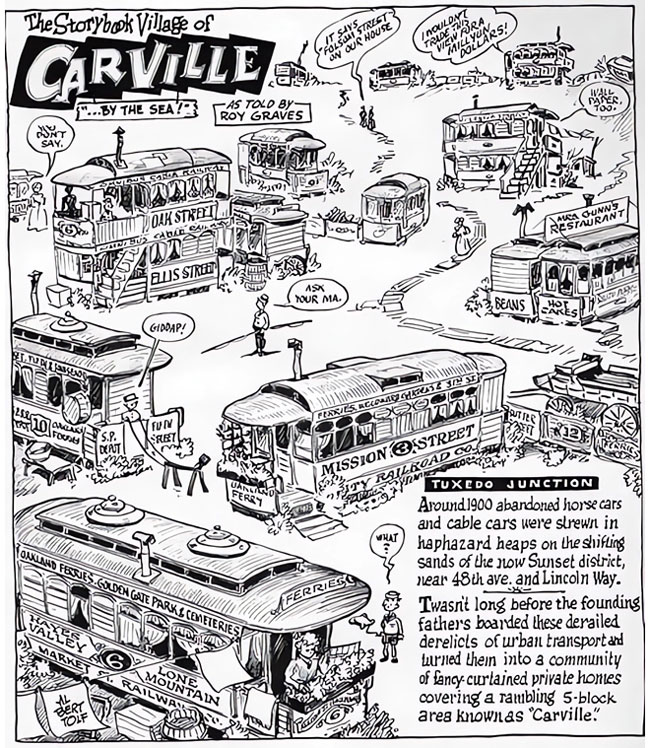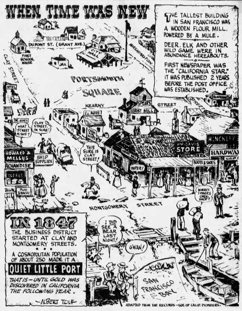 Tolf's series of cartoons about San Francisco's rich history, 'In Old San Francisco' (1956-1958), was very popular. The series of 101 cartoons originally ran in the San Francisco News from 4 September 1956 until 1958, after which they were collected in book format in 1960. The San Francisco Examiner reprinted the series "as a Bicentennial treat" in 1976.