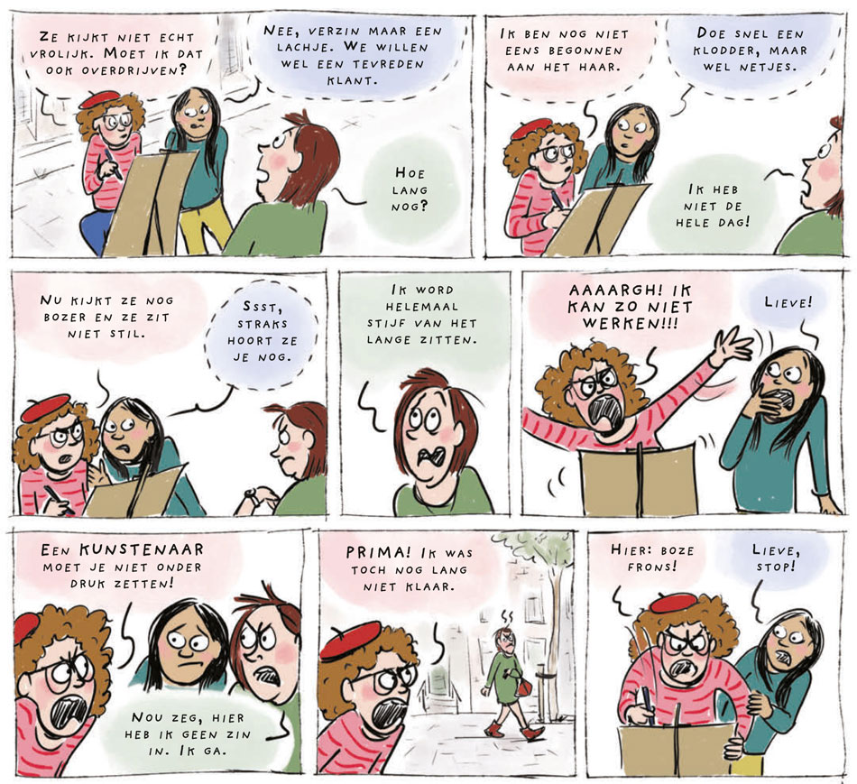 In addition to making comics, Betje Ton is also active as a live cartoonist, notably for the Climate Centre of the Red Cross.