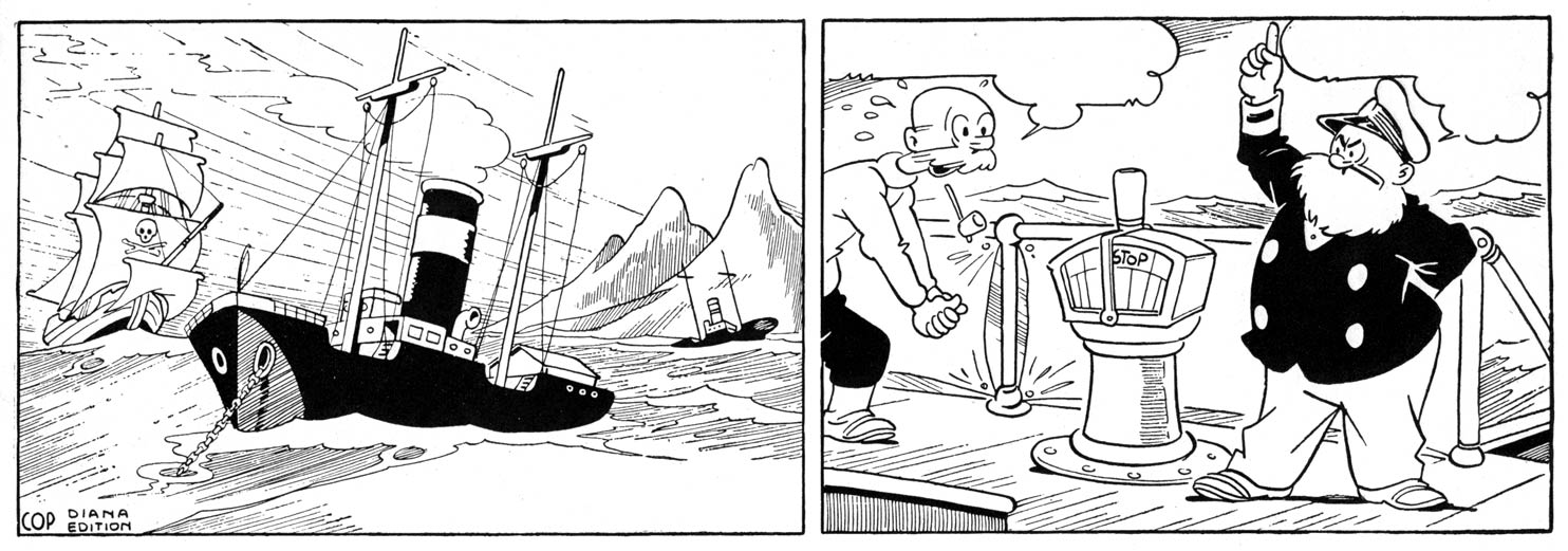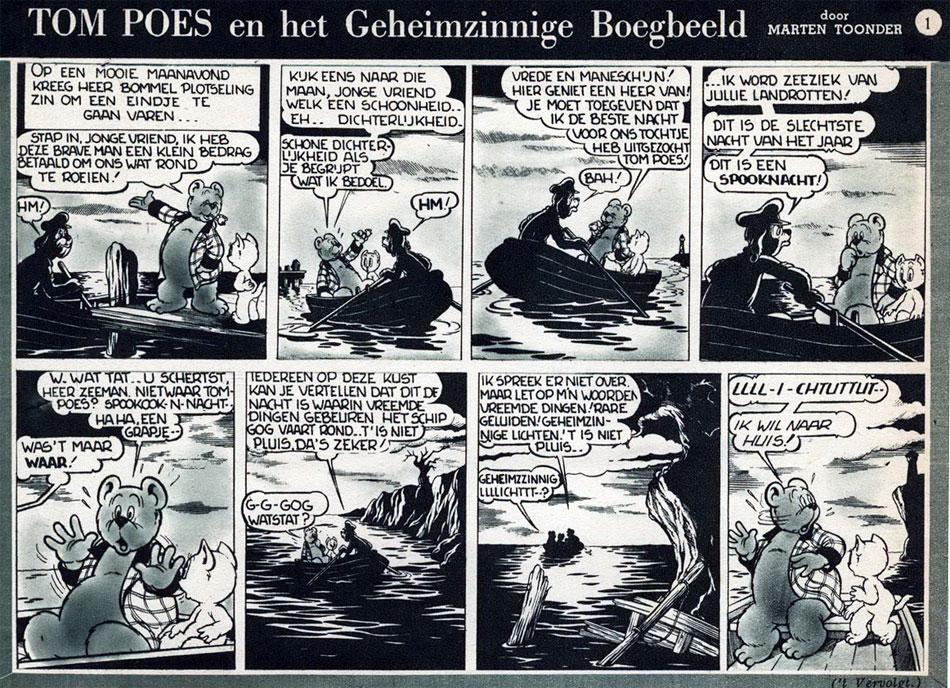 Strip from the first Tom Poes story, 'Het Geheim der Blauwe Aarde' (AKA 'De Laarzenreuzen', 1941).