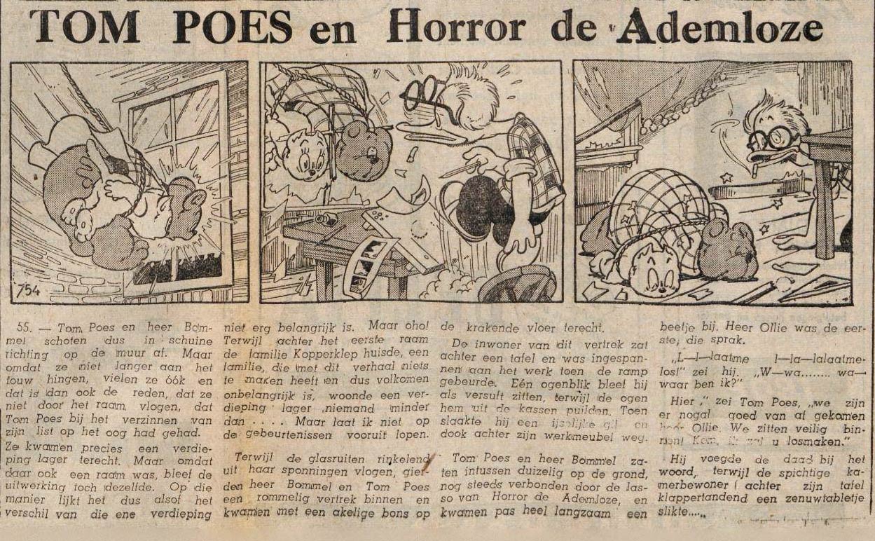 'Horror de Ademloze' (pencils by Henk Kabos and Ben van 't Klooster). In this story, Marten Toonder satirizes the perception of the comic medium by moral guardians.