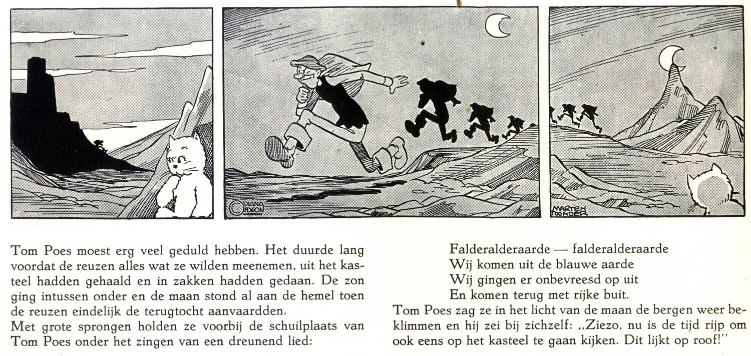 Since 'Tom Poes' had been a mainstay in newspapers for four decades, the final episode naturally received nationwide news coverage. At readers' demand, NRC Handelsblad then reprinted older episodes for the next twelve years. When in 1998 they decided to give other comics a chance, it still led to complaints. Meanwhile, the Swedish newspaper Dagens Nyheter, who commenced publication of 'Tom Puss' in February 1946, ran the series uninterruptedly until 2001. By the time 'Tom Poes' came to an end in The Netherlands, the only Toonder comic still in production was 'Panda'. Marten's own involvement had already ended in 1977, when the 'Panda' feature switched format from text to balloon comic. 'Panda' ran for another five years, and came to an end on 31 December 1991, marking an end of an era in which Toonder series dominated Dutch newspapers.