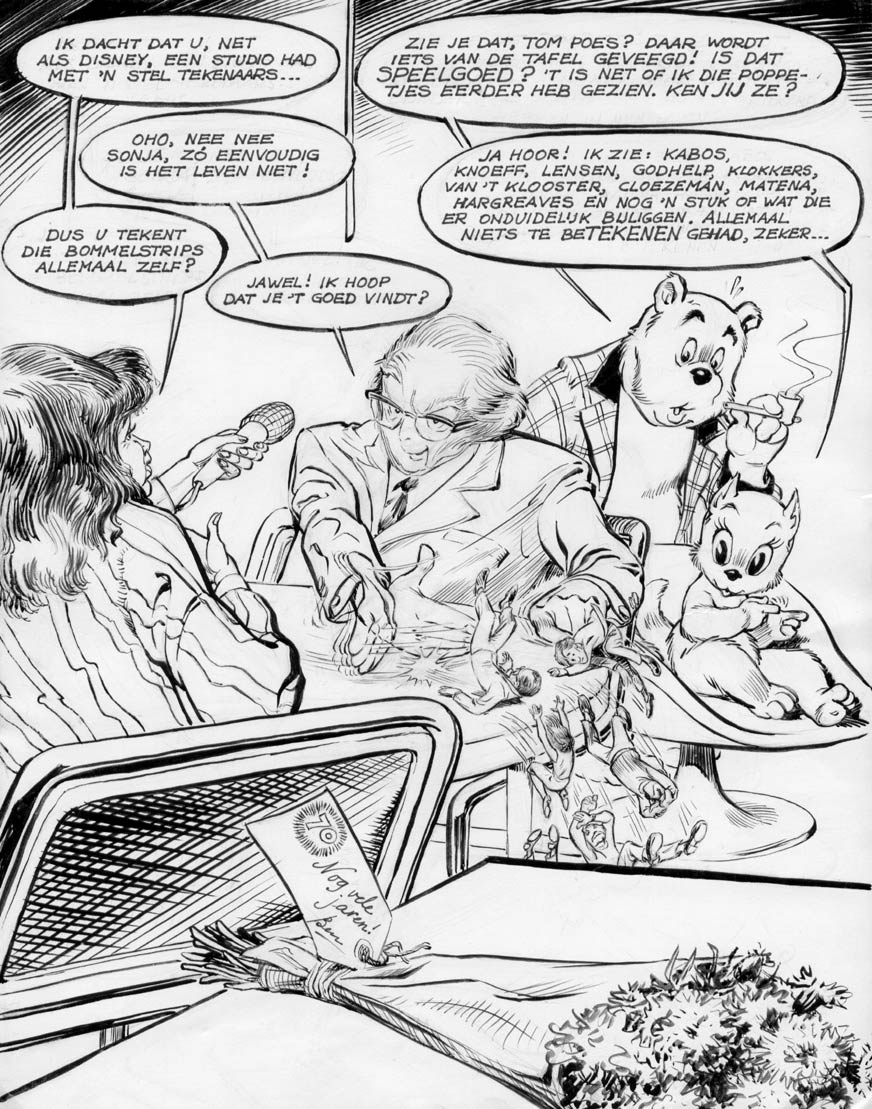 Lambiek will always be grateful to Marten Toonder for illustrating the letter "B" in our encyclopedia book, 'Wordt Vervolgd - Stripleksikon der Lage Landen', published in 1979. In 1997, Lambiek published the 'Bommel Concordantie' (1997), a reference book about Marten Toonder's 'Tom Poes' by Henk van den Ham and a group of students from the Amsterdam School of Applied Arts.