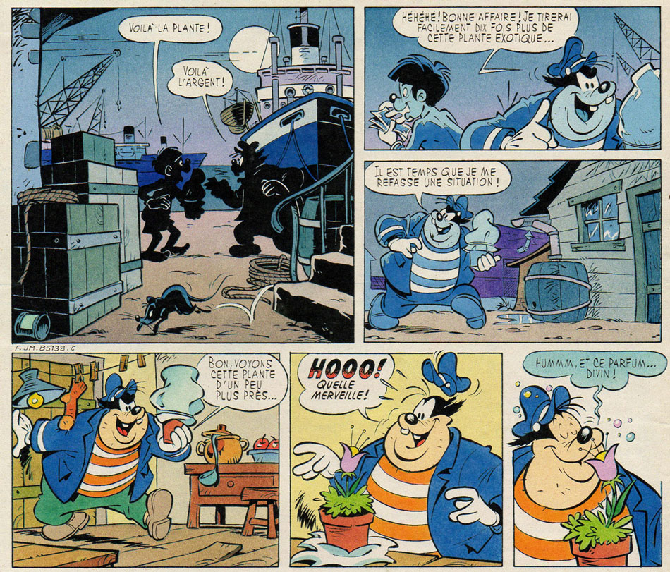 By 1984, the Tortajadas and several other artists left Recreo to join other art studios. José Miguel - along with his brother and wife - joined Studio Comicup, headed by José Canovas. Between 1985 and 1990, José Tortajada was a productive artist for the French Disney magazine, Le Journal de Mickey. He specialized in 'Mickey Mouse' adventure stories and gag pages with 'Sport Goofy' and Goofy's mischievous mynah bird sidekick 'Ellsworth'. In 1990, he drew a 'Duck Tales' story for the Danish publisher Gutenberghus, before leaving the comic industry.