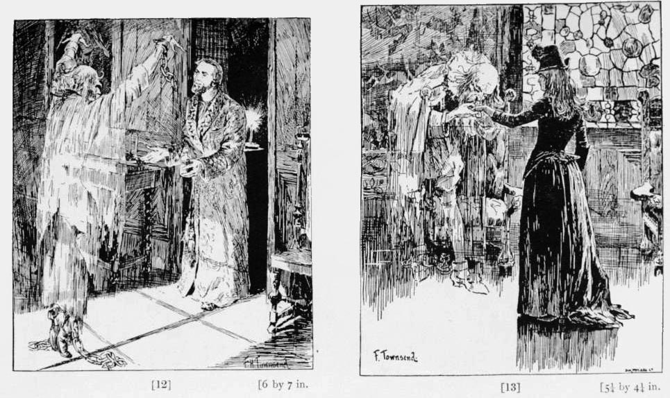 As an illustrator, Townsend is best remembered for illustrating the original editions of Oscar Wilde's 'The Canterville Ghost' and 'The Crime of Lord Arthur Savile', serialized in 1887 in The Court and Society Review. He also livened up the pages of various novels by Baron de Bazancourt ('Secrets de l'Épée', 1900), Charlotte Brontë (the second edition of 'Jane Eyre', from 1897), Gerald Campbell, Charles Dickens ('A Tale of Two Cities', 1897 edition, 'A Child's History of England', 1905 edition), Arthur Conan Doyle's 'The Sign of the Four' (1903), Nathaniel Hawthorne ('The House of the Seven Gables'), Sara Jeannette Duncan ('A Social Departure', 1890), Rudyard Kipling ('They', 1906), L.T. Meade ('Jill, a Flower Girl', 1892), Thomas Love Peacock ('Gryll Grange', 1896), Walter Scott ('Rob Roy'), Matthew Sturgis' 'Oscar a Life', H.G. Wells' 'Select Conversations with an Uncle, now Extinct' and Israel Zangwill ('The Old Maids' Club', 1892).