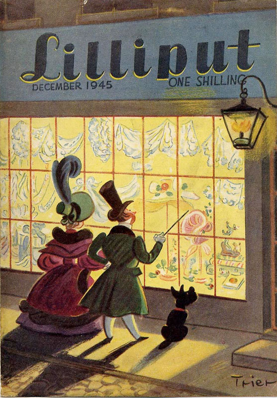 Cover illustrations for Lilliput, respectively the December 1945 and May 1947 issues.