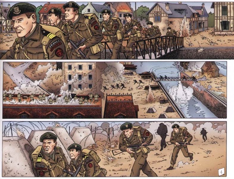Several of these comics had military history or aviation as subjects. For the collection 'Villes en Guerre' (Le Téméraire, 1994), Uderzo provided the volume about the village of Ascq with writer Olivier Gilleron. With Philippe Zytka, he made the comic book 'Commando Kieffer' (Éditions du Triomphe, 2012), about Lieutenant Philippe Kieffer's Fusiliers Marine commando during the D-Day landings. A large part of Marcel Uderzo's body of work dealt with the history of aviation. With writer Jean-Pierre Lefèvre-Garros, Uderzo made comics about the famous aviators Roland Garros (Mémoire d'Europe, 1993) and the Wright Brothers (Claude Lefrancq Éditeur, 2005) in the collection 'Biggles Raconte'. In that same collection, he shared the art duties with Daniel Chauvin for the installment about the Falklands War by Joël Rideau and Bernard Asso ('La Bataille des Malouines', 1997).