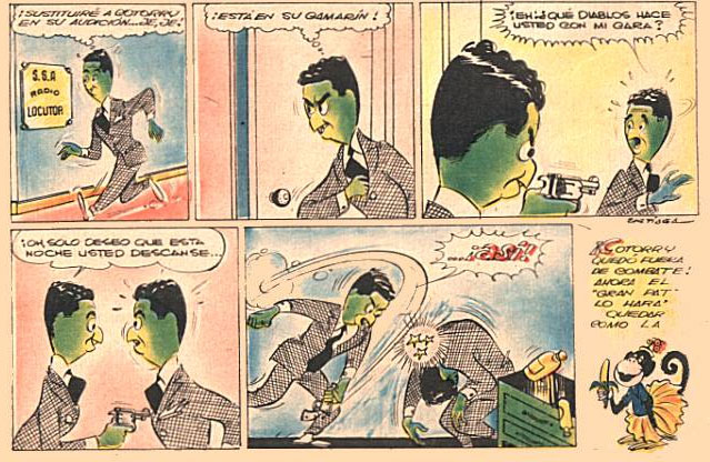 'El Chiflado Incognito' (PBT magazine, 19 November 1954). Translation: "Incognito told me how we can raise our salary!" - "You're not telling me stories, are you, friend?" - "No, he knows it from a good source."