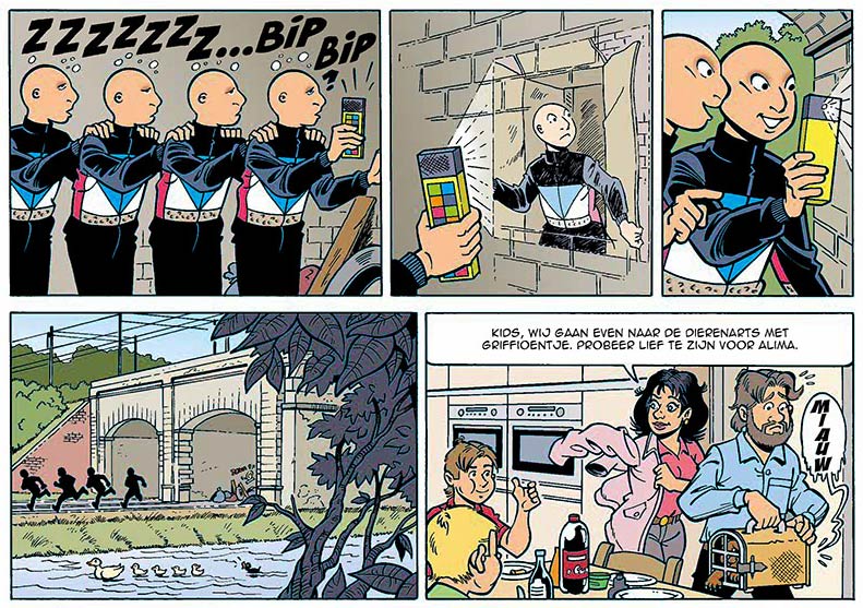 A new celebrity comic by Van Bael saw the light in 2018, when he created a one-shot comic book about the mysterious Belgian dance group Baba Yega who won the TV talent show 'Belgium's Got Talent' and managed to make it to the final of the German equivalent 'Das Supertalent'. The plot of the comic book, 'De Orde van S.N.O.T.' (Ballon Media, 2018) was based on the similarly titled movie about the band. In line with the group's pantomime stage performance their comic book personas also perform without any dialogue.