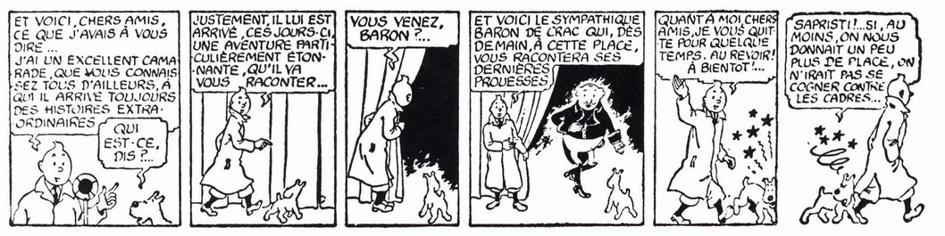 Tintin personally introduced the return of Van Melkebeke's 'Baron de Crac' in the episode of 'The Shooting Star' (Le Soir, May 1940).