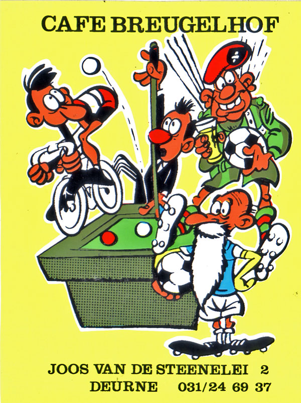 In late 1976, Vandemeulebroucke founded his own printing firm, Breughel Screen PVBA, in Antwerp. The brand name references painter Pieter Bruegel the Elder, but was actually named after its original address in the Antwerp Breughelstraat. Specializing in sticker design and production, Vandemeulebroucke attracted clients throughout Flanders and the Brussels region. With print runs varying from 1 to 10,000, Erik's stickers promoted local brands, bars and other initiatives. Important assignments during the 1980s were his designs of so-called QSL cards for radio amateurs. For decades, Vandemeulebroucke served as his company's business manager, but also as the main designer of stickers, postcards and promotional art. In 1996, the firm continued under the name Breughel International BVBA, based in Wilrijk. At the age of 65, in 2007, Erik Vandemeulebroucke retired, leaving the company to his son Iwan, who ran Breughel International until the company was dissolved in 2019.