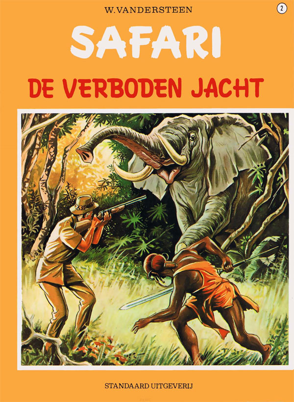 In the late 1960s, the TV series 'Daktari' (1966-1969) - about a vet in East Africa - was quite popular. It inspired Vandersteen to create the comic series 'Safari' (6 May 1969 - 29 January 1974), which ran in Pats and was mostly illustrated by Karel Biddeloo and Merho. Contrary to 'Daktari', 'Safari' is set in Central Africa and stars a white hunter, Sam Burton. Sam is assisted by biologist Ellen Moore, her son Tim and a Maasaï hunter named Mgono. Much like 'Bessy', the stories had regular intermezzos to educate readers about African culture, flora and fauna. Quite unusual for Vandersteen was that the series followed an ongoing storyline throughout all albums. Much of its concept was modeled after the British comic series 'Fraser of Africa' (1960-1961) by George Beardmore and Frank Bellamy, which also featured a white hunter and a Maasaï. 'Safari' was eventually terminated due to lack of success, which Vandersteen attributed to the demystification of Africa through TV.