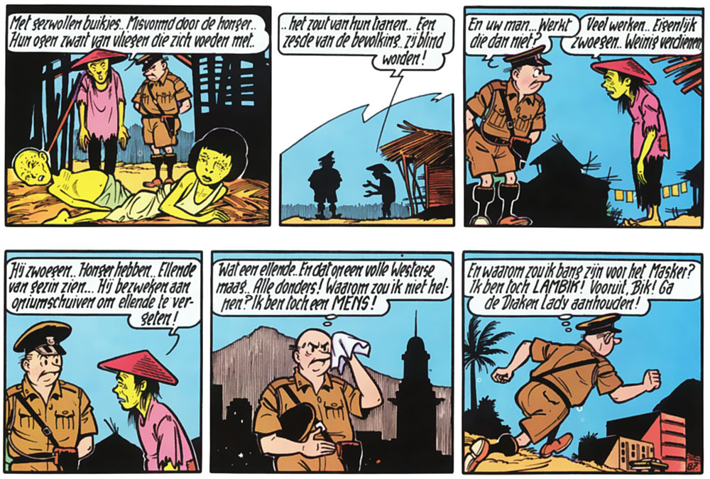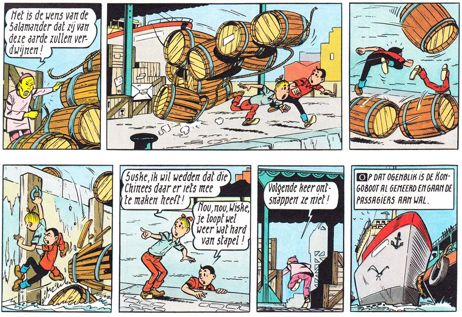 'De Sissende Sampan' (1963). In 1959-1960 Vandersteen had traveled to South-East Asia and was deeply shocked by the poverty in Shanghai, which inspired not only this album, but also this scene.