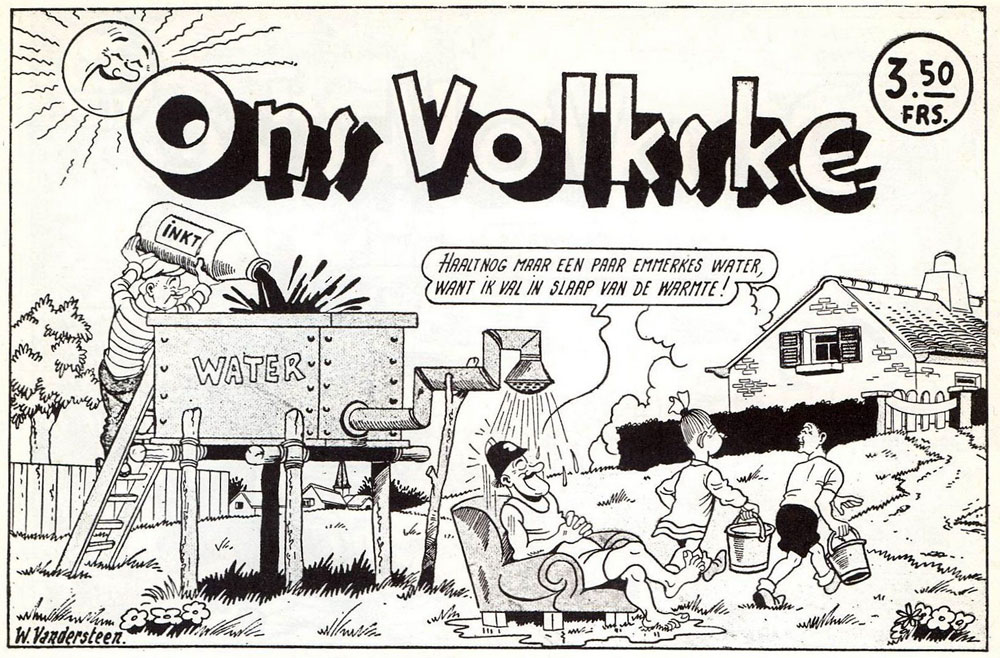 One day, Vandersteen was paging through a U.S. fashion magazine, and noticed a fascinating article with the title 'Comics In Your Life', dealing with the cultural impact of newspaper comics. Vandersteen had read comics as a child, particularly in the magazine De Kindervriend, where one of his favorite characters was 'Blutske', from a translated comic by an unknown foreign author. As a teen, he had read Hergé's 'Totor' (1926-1929) in the scouts' magazine Le Boy Scout Belge, which inspired him to create gag cartoons and comics in his own scouting magazine, but he had never done anything with it since. The 'Comics In Your Life' article introduced him to many U.S. comics he wasn't familiar with. Vandersteen was especially intrigued that certain cartoonists were so popular and well-paid, and decided to become one himself. A bold move, since in the early 1930s, Belgian comics were still in their infancy, with only Hergé having some success. Only a couple of local comic artists existed and most made illustrated stories for children's magazines. For his training, Vandersteen learned from studying other artists. Besides Hergé, he considered Walt Disney, Floyd Gottfredson, Eugeen Hermans (Pink), George Herriman, Otto Soglow, Bud Fisher, E.C. Segar, Milton Caniff, Alex Raymond and Hal Foster as important graphic influences. In the field of high art, he looked up to the Flemish masters Pieter Bruegel and Peter Paul Rubens, as well as the Dutch painter Hieronymus Bosch. Later in his career, he also expressed admiration for H.G. Kresse, Bob de Moor, Marc Sleen, Anton Pieck and - to the surprise of many - the cartoonist Kamagurka.