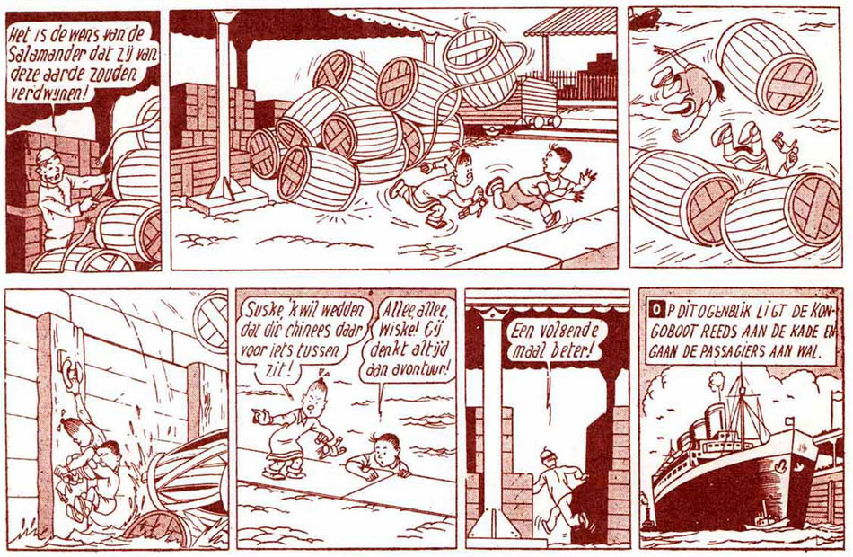 The daily episodes of 'Suske en Wiske' also underwent some Clear Line influences in the Tintin years ('Het Bevroren Vuur', 1951)