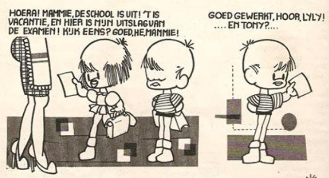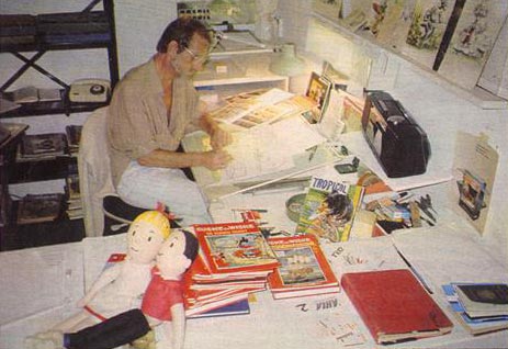 The young man studied at the Sint-Lucas and at the Academy of Fine Arts in Brussels, and from 1959 on got involved in his father's studio. Bob drew and inked the backgrounds in the first three stories of 'De Rode Ridder', often in collaboration with Eduard De Rop and Karel Verschuere (according to De Rop, Bob Vandersteen only inked the second album, 'De Gouden Sporen', which was penciled by Willy himself). In 1969, when Karel Biddeloo took over the series, Bob sometimes lent a helping hand. In addition, Bob Vandersteen made a few comics and illustrations for toddler magazines, including a strip starring a boy and girl named Tony and Lily. He also made the illustrations for the children's books 'Jappe' by Guido Staes (Standaard Uitgeverij, 1969) and 'Mietje Porselein en Lili Spring-in-'t Veld' by Walter van den Broeck (Brito-uitgaven, 1970). Vandersteen's activities as an illustrator and comic artist were short-lived, however. He instead participated in the production of children's cartoons for the Belgian broadcasting companies BRT and RTBF during a period of twelve years. One of the people who worked for him as an animator was Jean-Louis Lejeune. Vandersteen later settled in Brazil, where he made sculptures and collage art.