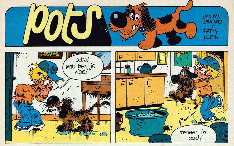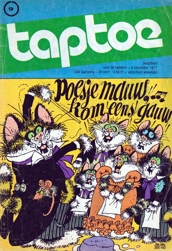 Since the late 1960s, Van der Voo was also a prominent illustrator for the school magazines published by Malmberg. He provided Taptoe magazine with most of its early 1970s cover drawings, and made posters, games and story illustrations for Okki, Jippo and Bobo, as well as their annual seasonal books. With writer Patty Klein, he made the comic strip about the dog 'Pots' (AKA 'Joep, Jolleke en Pots', 1976-1977) for kindergarten magazine Okki. Educational publishers like Zwijsen and Malmberg also requested his services for their schoolbooks and teaching methods.