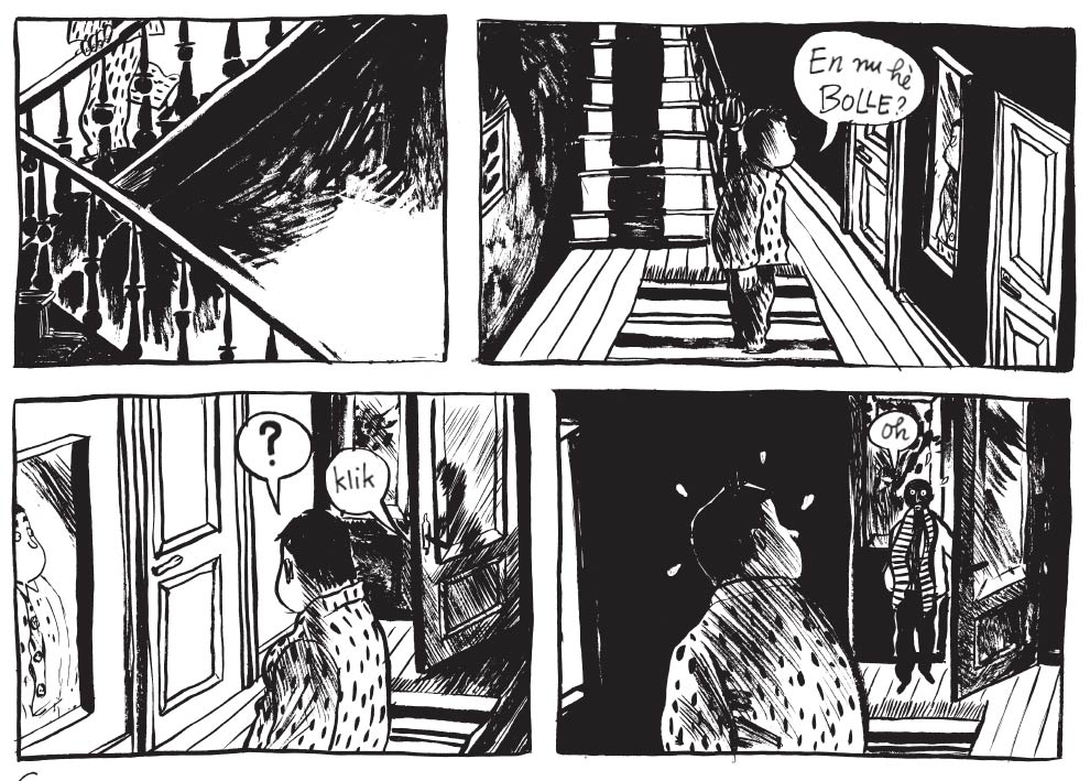 All in all, Vanistendael is not an artist who likes to settle in one drawing style or technique. The desire to produce artistically interesting work is also one of her spearheads at the LUCA School of Arts in Brussels, where she is a teacher in comic art. She likes to challenge her students to overcome obstacles, which also leads to new experiments in her own oeuvre. The toddlers's picture book 'Blokje Om' (Querido, 2018) for instance, which tells a story from collages with cut-out pieces of colored paper. Among her students were Nathalie Carpentier, Veerle Hildebrandt and Yannick Pelegrin.