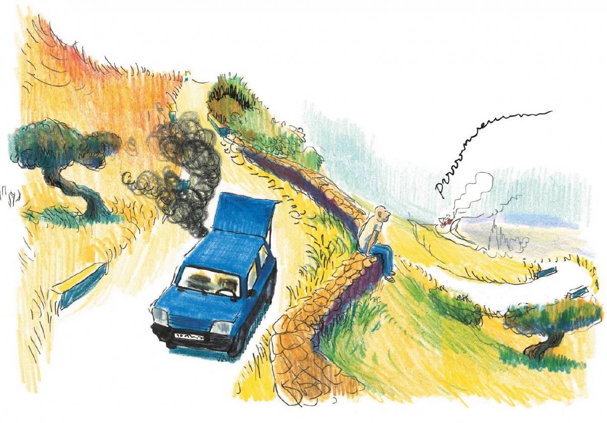 For her next book, Vanistendael desired a change of pace, and a less heavy or personal theme. She teamed up with the writer Mark Bellido (1975), who had spent four years protecting Basque politicians against the ETA. His experiences formed the basis for 'Salto', an action-packed comic about a candy salesman who becomes a bodyguard of Spanish politicians. The massive work of over 350 pages was drawn by Vanistendael with colored pencils and felt-tip pens. The book proved a challenge, since she had to switch from intimate storytelling to the craft of building tension. She, however, drew the book in the aftermath of the Paris terrorist attacks of November 2015, and witnessed the war against terrorists firsthand, as suspects were apprehended right across the street of her Molenbeek atelier. 'Salto' (2016) was published in French by Le Lombard, and in Dutch by De Bezige Bij, under the title 'Mikel'.