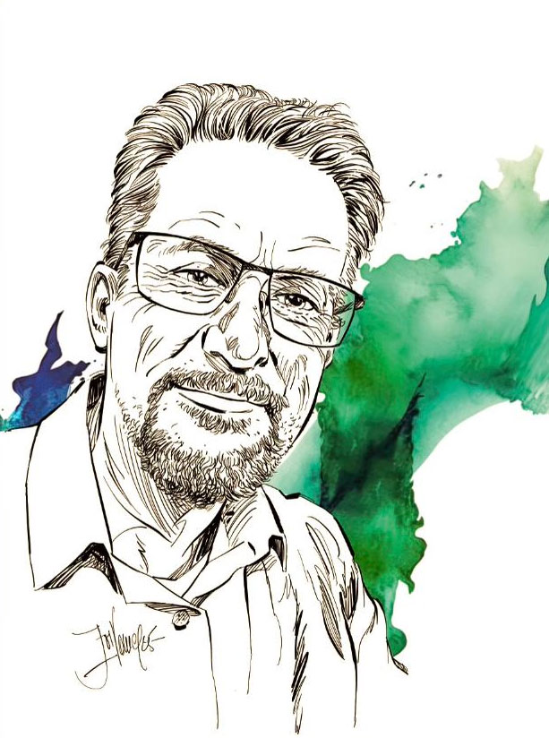 Jos Vanspauwen was born in 1954 in Genk and attended the Academy of Fine Arts in Hasselt. He ranks Marc Sleen, Willy Vandersteen, Jef Nys, Hergé, Franz and Yves Swolfs among his artistic influences. His first professional work was drawing the comic 'Het Web van Hij', scripted by Noël Slangen, the well-known communication advisor and spin doctor for various Flemish politicians. The project was however never finished. In 1984, he made the illustrations of 'De Terugkeer van Jezus Christus', a religious comic written by Paul Ramaekers for the evangelical publisher Het Goede Boek.