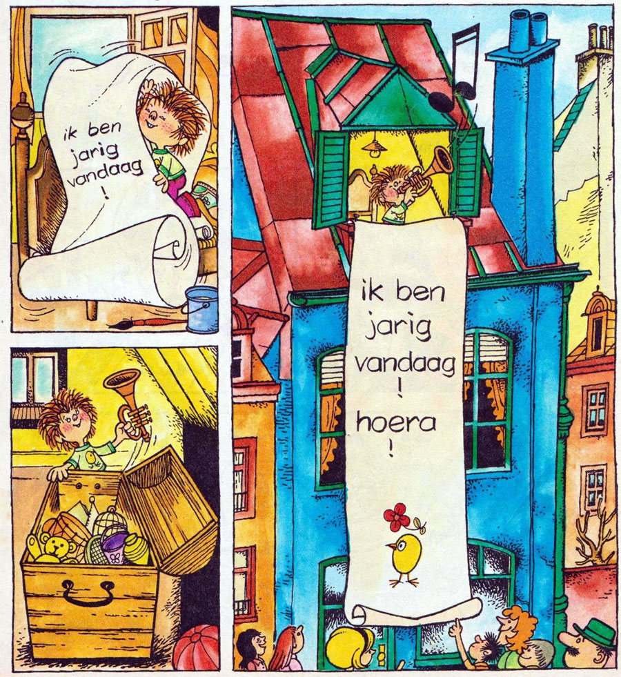 In the mid-1970s, Vanstiphout drew comic features for the Dutch preschool children's magazine Okki. Based on stories by Antwerp scriptwriter Jo Briels, he first created the gag comic 'Puk De Nar' (1974-1975) about a funny jester. It was followed by the 'Ragebol' comic (1975-1977), starring a young boy with messy hair.