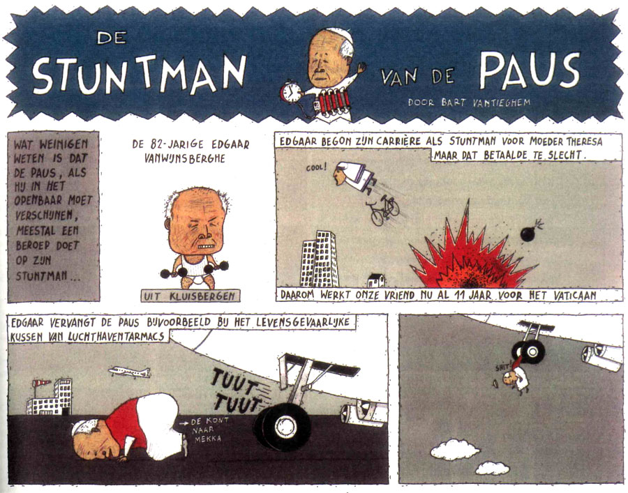 "The Pope's Stuntman" (from Humo), caricaturing Pope John Paul II and Mother Teresa.