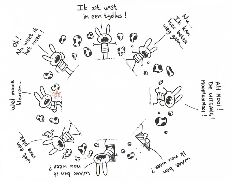 A selection of these absurd, surrealistic and at times sarcastic cartoons has been published in 'Dirks Big Bunny Book' by Silvester in 2012. Verschure has additionally participated in the small-press zine Kutlul with Joost Halbertsma, Annika Hauke and Niels Kalk in 2016. Verschure and Halbertsma subsequently produced a couple of follow-ups, with additional contributions by Naomi Taverdin, Felix Hauke, Ralph Schulz, Fufu Frauenwalh, Andy Leuenberg, Pedro Amaro, Lilith Peters, Mustafa Kandaz, Jan Huijben, Hendrik Nieuwenhuis, Marc Kolle, Vincent Zurwesten, Stanley van der Meer, Argibald, Marcel Ruijters, Maia Matches, Sidhi Achmat, Quin de Vreede, Rogier Smal, Lisa Mckendrick & Tim Drage, Arno Pelzer, Pieter Zandvliet, Paralodia and Nicole van den Berg.